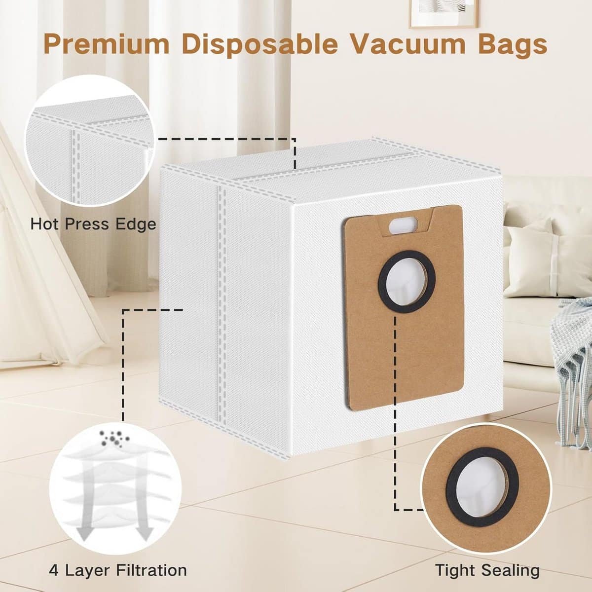 12 Stuks Stofzuigerzakken voor Robotstofzuiger met Groot Reservoir