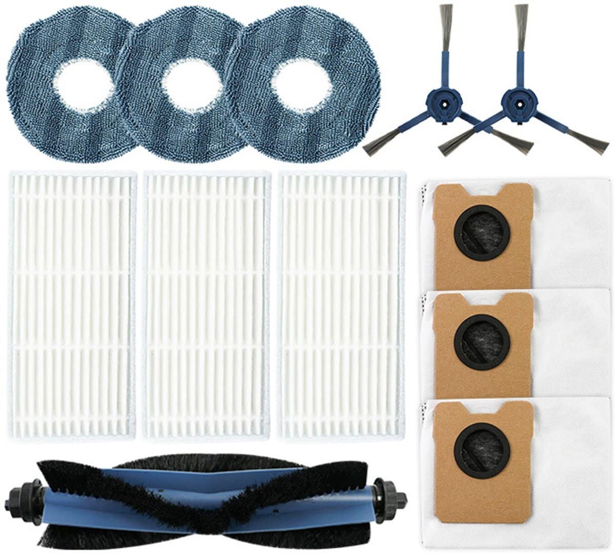 15-delige accessoireset Geschikt voor de Eufy Omni C20 robotstofzuiger, inclusief 1 hoofdborstel, 4 zijborstels, 4 dweilen, 3 filters en 3 stofzakken