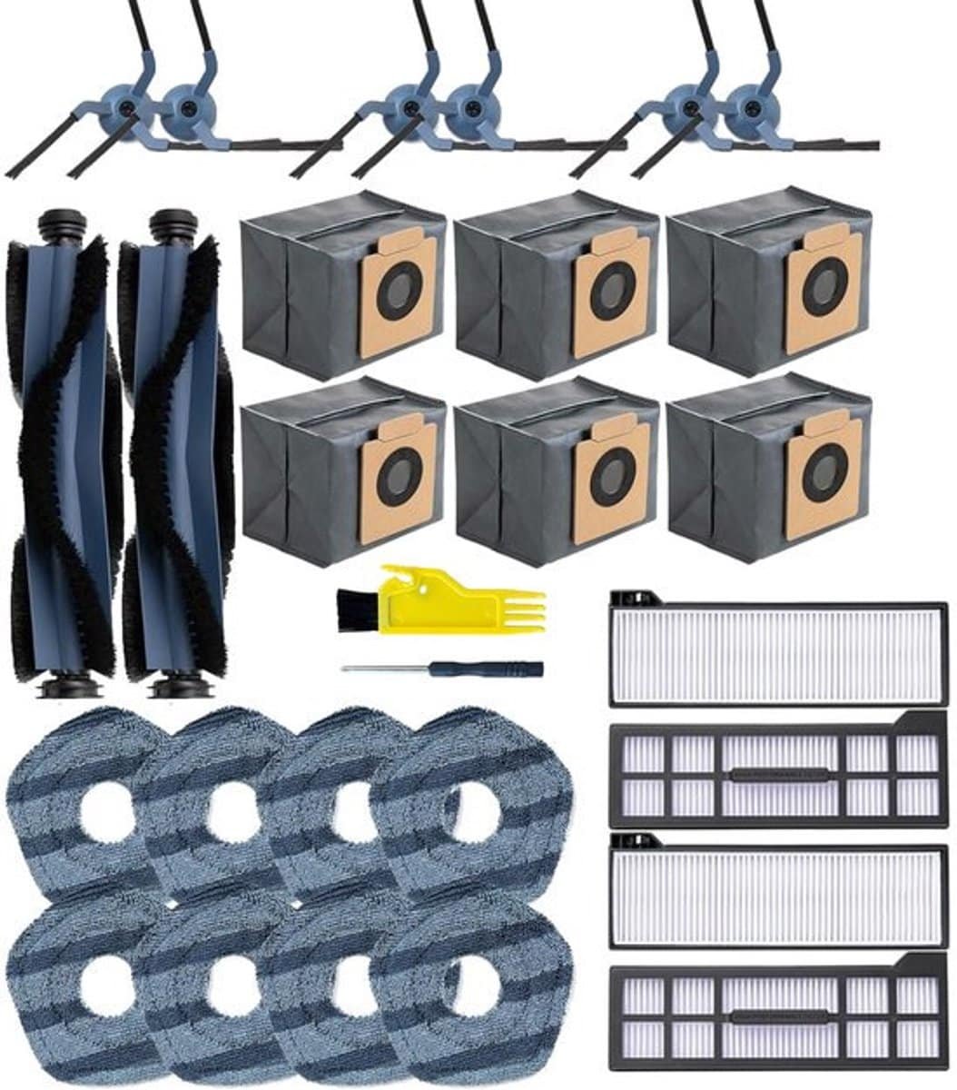 28stuks – Stofzuiger accessoireset – Accessoireset geschikt voor Eufy X10 Pro Omni Robotstofzuiger – 2x Hoofdborstel – 6x stofzak- 4 x filter – 6 x zijborstels – 8x dweildoek – 1 reinigingsborstel – 1 schroevendraaier