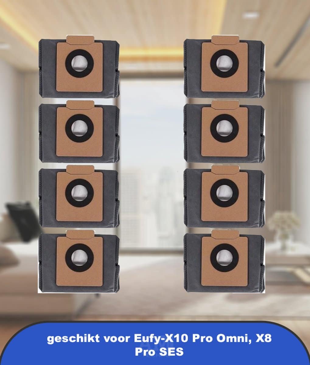 Compatibel met: 8 stuks stofzuigerzakken voor Eufy-X10 Pro Omni, X8 Pro SES robotstofzuiger, stofzak, vervangende Clean Base zak, controleer het modelnummer voor de aankoop.