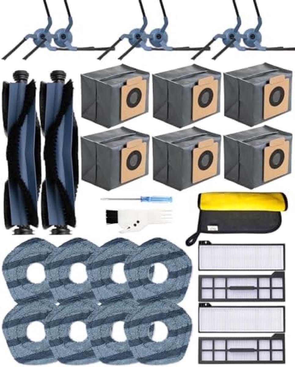 Productlijst: Alleen geschikt voor de Eufy X10 Pro Omni robotstofzuiger. De set bevat 2 rollerborstels, 6 zijborstels, 6 stofzakken, 4 HEPA-filters, 8 reinigingsdoeken, 1 reinigingsborstel, 1 schroevendraaier en 1 doek, in totaal 29 stuks.Hoge kwaliteit