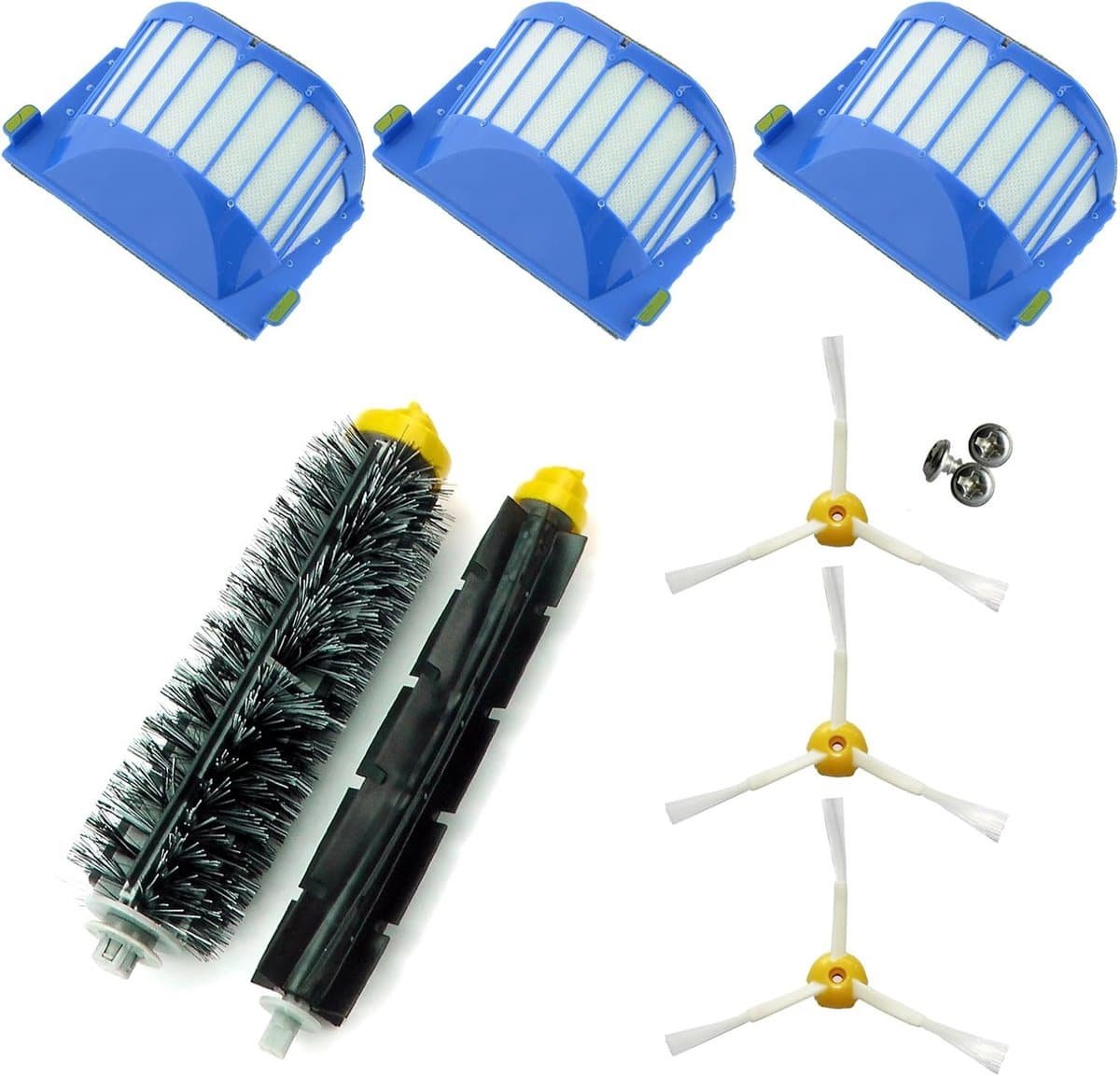 Geschikt voor Asp-Robot vervangingsset voor Roomba 600/610/620/621/630/650/651/655/660/661/PET robotstofzuigers met 3 AeroVac-filters, 3 borstels met 3 messen, 1 middenborstel, 1 middenrol en accessoires