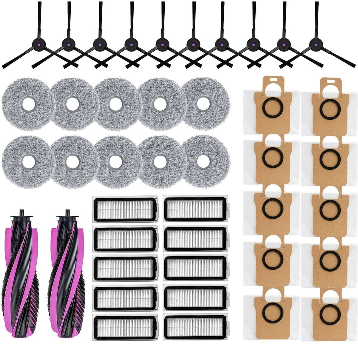 Geschikt voor Haier V30 V3S / RHSW-V30U1 Robotstofzuiger Accessoires Vervangingsset – 2 Hoofdborstels, 10 Zijborstels, 10 HEPA Filters, 10 Dweilpads, 10 Stofzakken