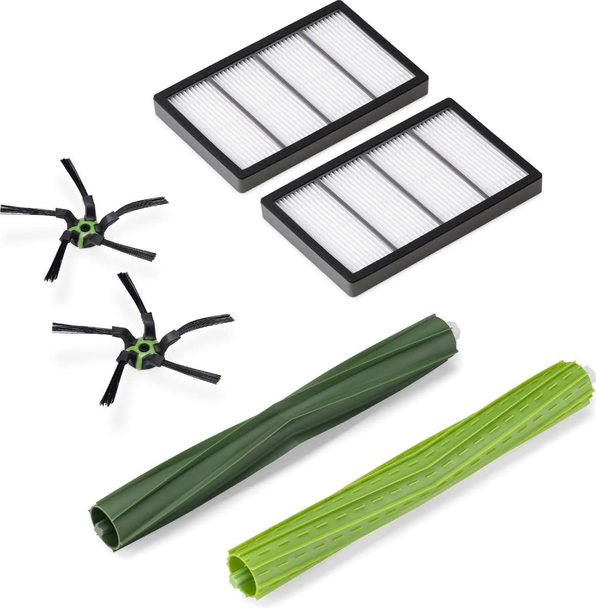 DETAILS: In deze set ontvang je twee zijborstels van kunststof en nylon, twee filters van kunststof en non woven stof en twee hoofdborstels van kunststof. De onderdelen zijn compatibel met iRobot Roomba s9/s9+.