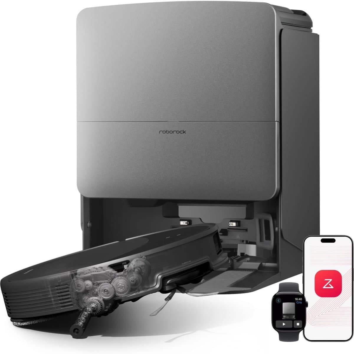 Volledig geautomatiseerd dockingstation voor echt handsfree en zorgeloos: De gloednieuwe RockDock is voorzien van een nieuw, uit één stuk bestaand reinigingslade-ontwerp dat het dweilbereik en de watercapaciteit vergroot voor een grondigere reiniging en een stillere werking. In combinatie met wassen met heet water van 100 °C, hete lucht van 55 °C (drogen), zelfreinigend onderhoud en tot wel 65 dagen automatische leging van het stofreservoir biedt dit apparaat een volledig handsfree ervaring.