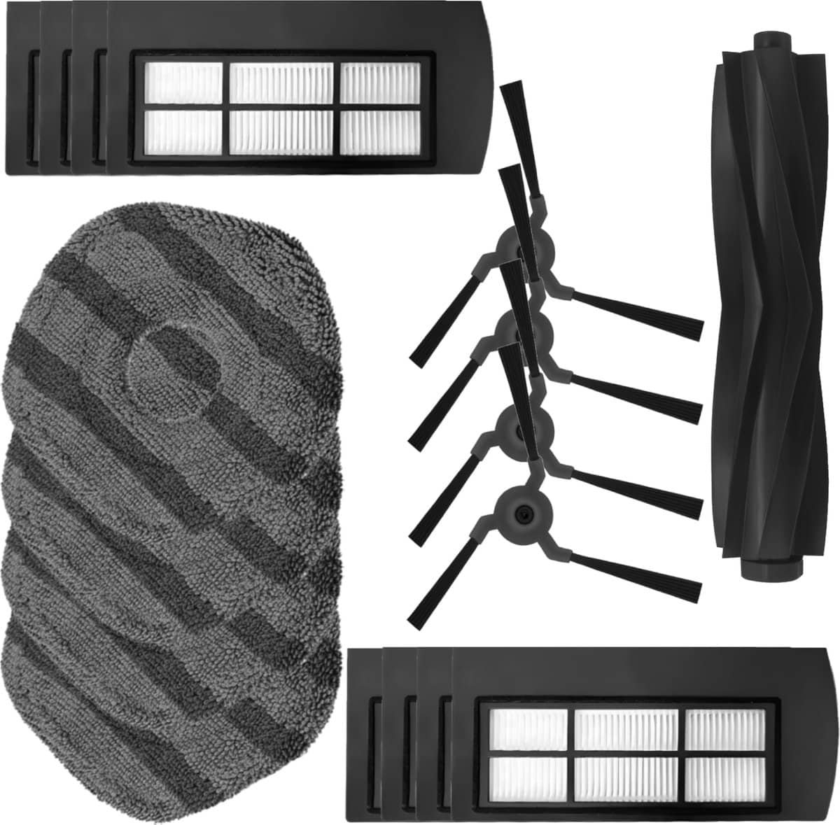 Robotstofzuiger set geschikt voor Eufy X9 Pro: 4x Mop Pad (dweil doeken), 8x Filter, 4x Zijborstel, 1x Hoofd Borstel Set