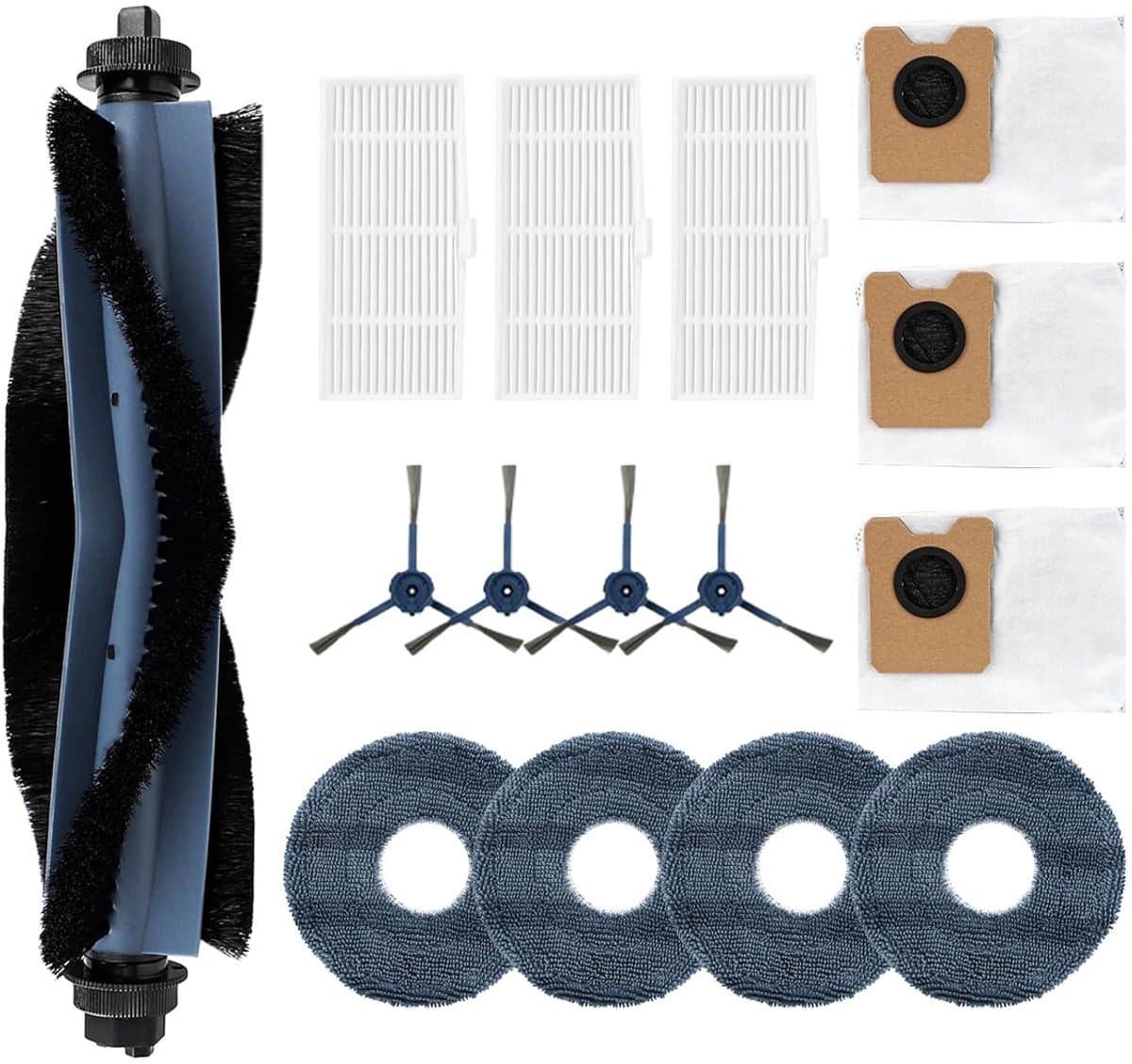 Complete onderhoudsset, inclusief: 3 stofzakken, 1 roterende borstel, 4 zijborstels, 4 dweilpads en 3 filters – in totaal 15 onderdelen. geschikt voor de Eufy OMNI C20 robotstofzuiger, voor een soepele werking.