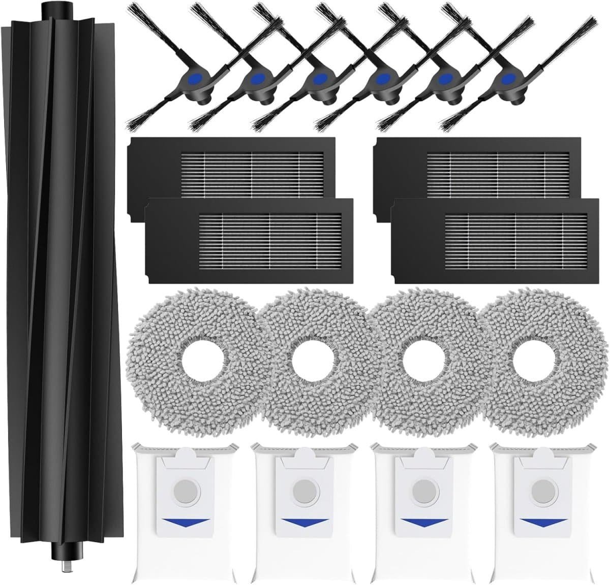 TOVBMUP Accessoires geschikt voor robotstofzuigers – 19 stuks – Geschikt voor Ecovacs Deebot X2 Omni/ X2/ X2 Pro – 1 hoofdborstel, 4 HEPA-filters, 4 dweilpads, 4 stofzakken, 6 zijborstels – Accessoireset reserveonderdelen geschikt voor X2 Omni