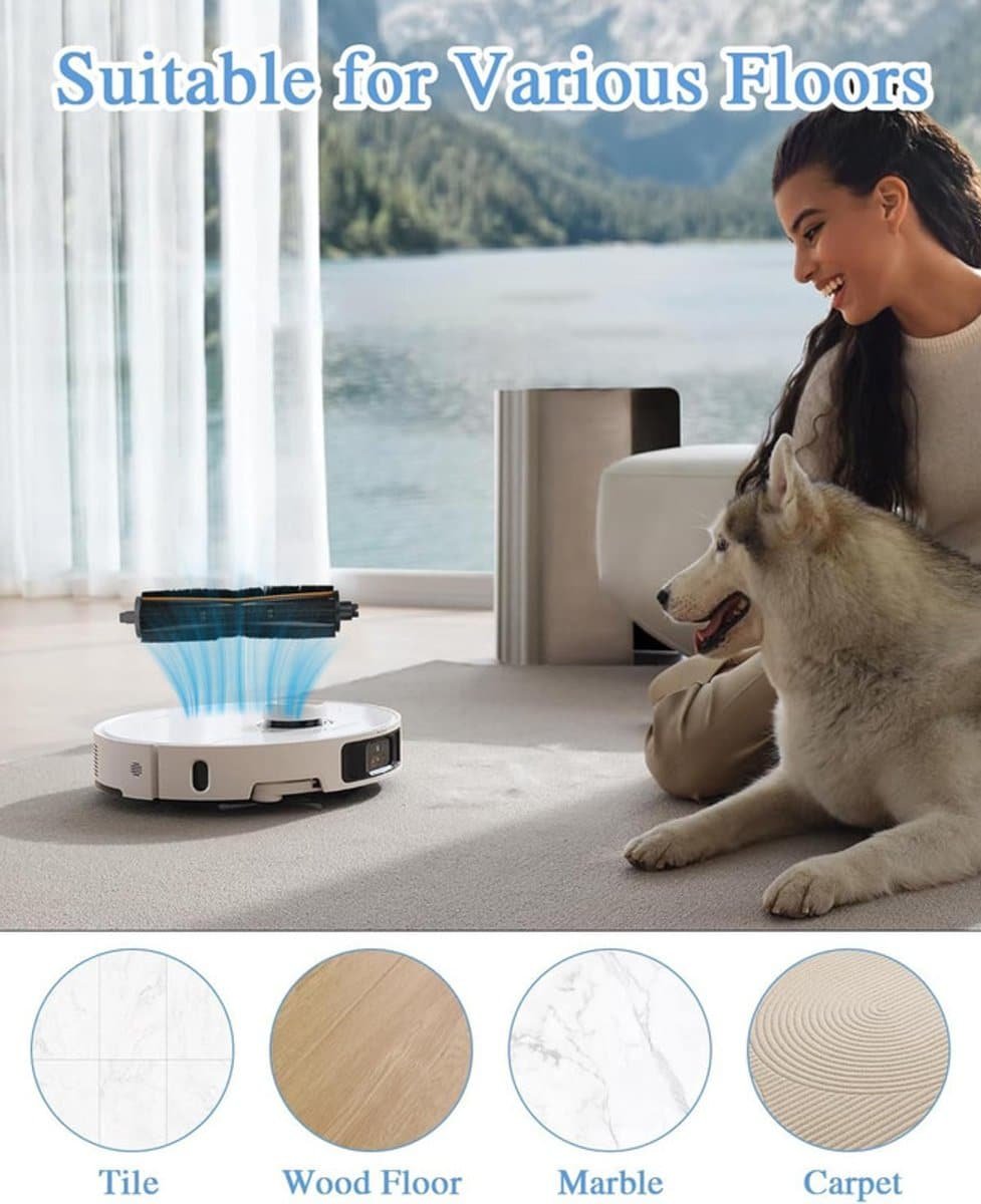 Hoogwaardige materialen: De hoofdborstel is gemaakt van hoogwaardige rubberen borstelharen en klitvrije rollen, duurzame accessoires die de noodzaak van frequente vervanging verminderen en consistente reinigingsprestaties bieden
