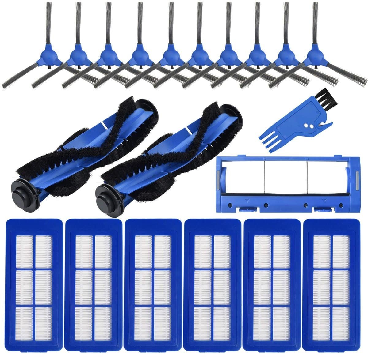 De set bevat alles wat u nodig hebt: 2 rolborstels, 6 hoogefficiënte HEPA-filters, 10 zijborstels, 1 beschermkap voor de hoofdborstel en 1 reinigingsaccessoire.