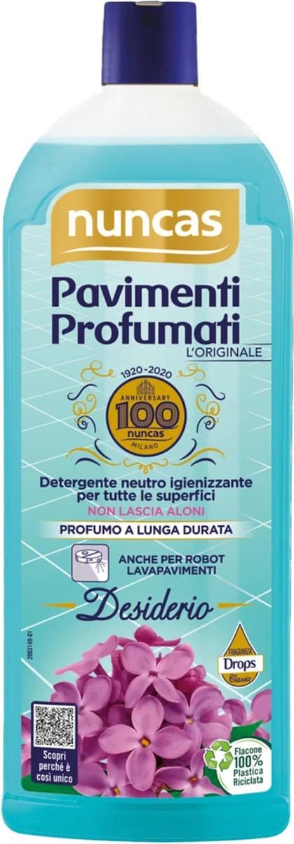 Nuncas Pavimenti Profumati Desiderio is een krachtig vloerreiniger die niet alleen grondig schoonmaakt, maar ook een subtiele en langdurige geur achterlaat in huis. Deze speciale jubileumeditie, uitgebracht ter gelegenheid van het 100-jarig bestaan van Nuncas, is geschikt voor dagelijks gebruik – zowel handmatig als in dweilrobots zoals de Roborock en iRobot Braava Jet M6.