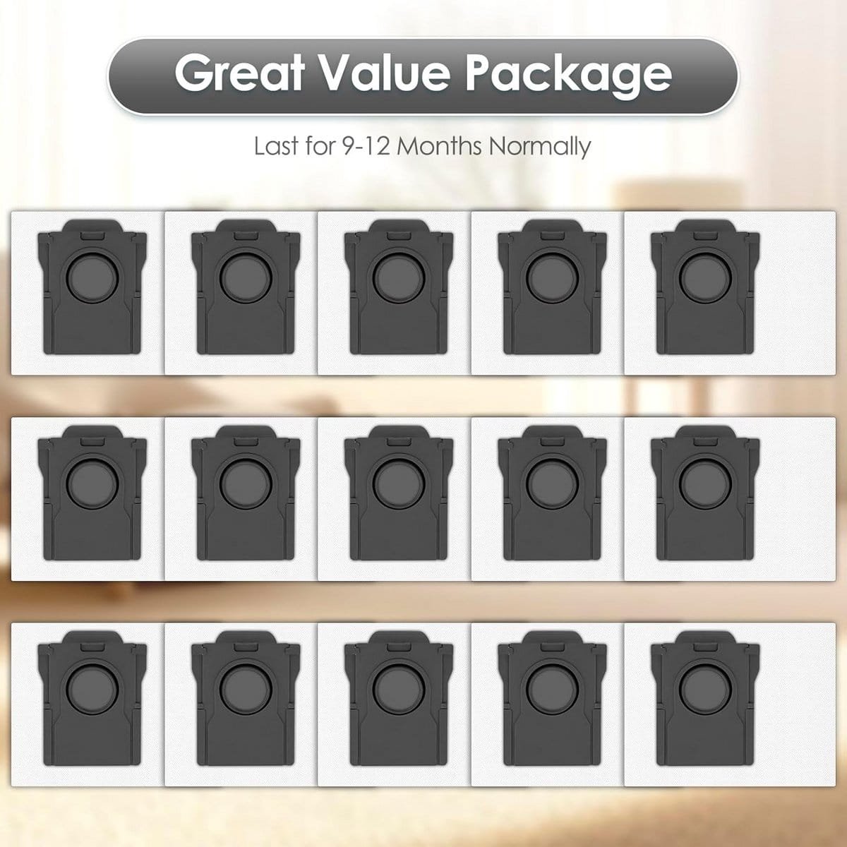 Set van 15 hoogwaardige vervangende stofzakken, perfect compatibel met verschillende modellen robotstofzuigers met zelfleegstation. Gemaakt van premium smeltgeblazen vezelfiltermaterialen en niet-geweven stoffen voor optimale filtering. Eenvoudig te installeren en milieuvriendelijk.
