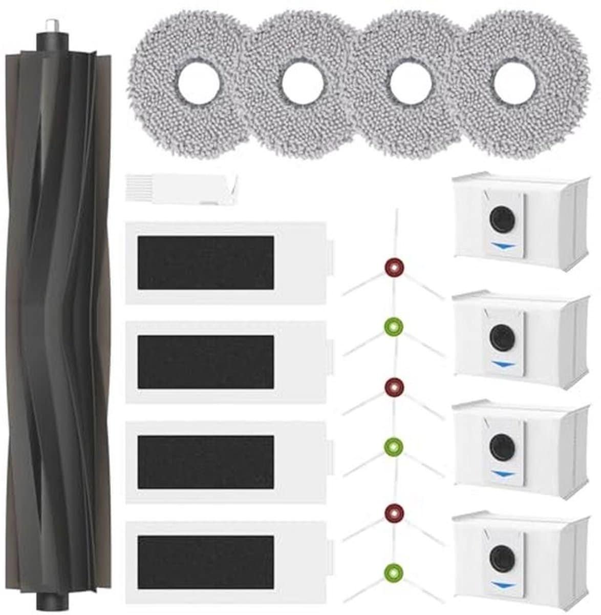 Ontdek deze set van 20 accessoires voor robotstofzuigers, perfect voor het onderhouden van uw toestel. De set bevat 1 hoofdborstel, 4 reinigingsdoeken, 4 HEPA-filters, 4 stofzakken en 6 zijborstels. Deze accessoires zijn ontworpen om de prestaties van uw robotstofzuiger te optimaliseren. Vervang de onderdelen elke 2 tot 3 maanden voor een langere levensduur en optimale werking van uw apparaat.
