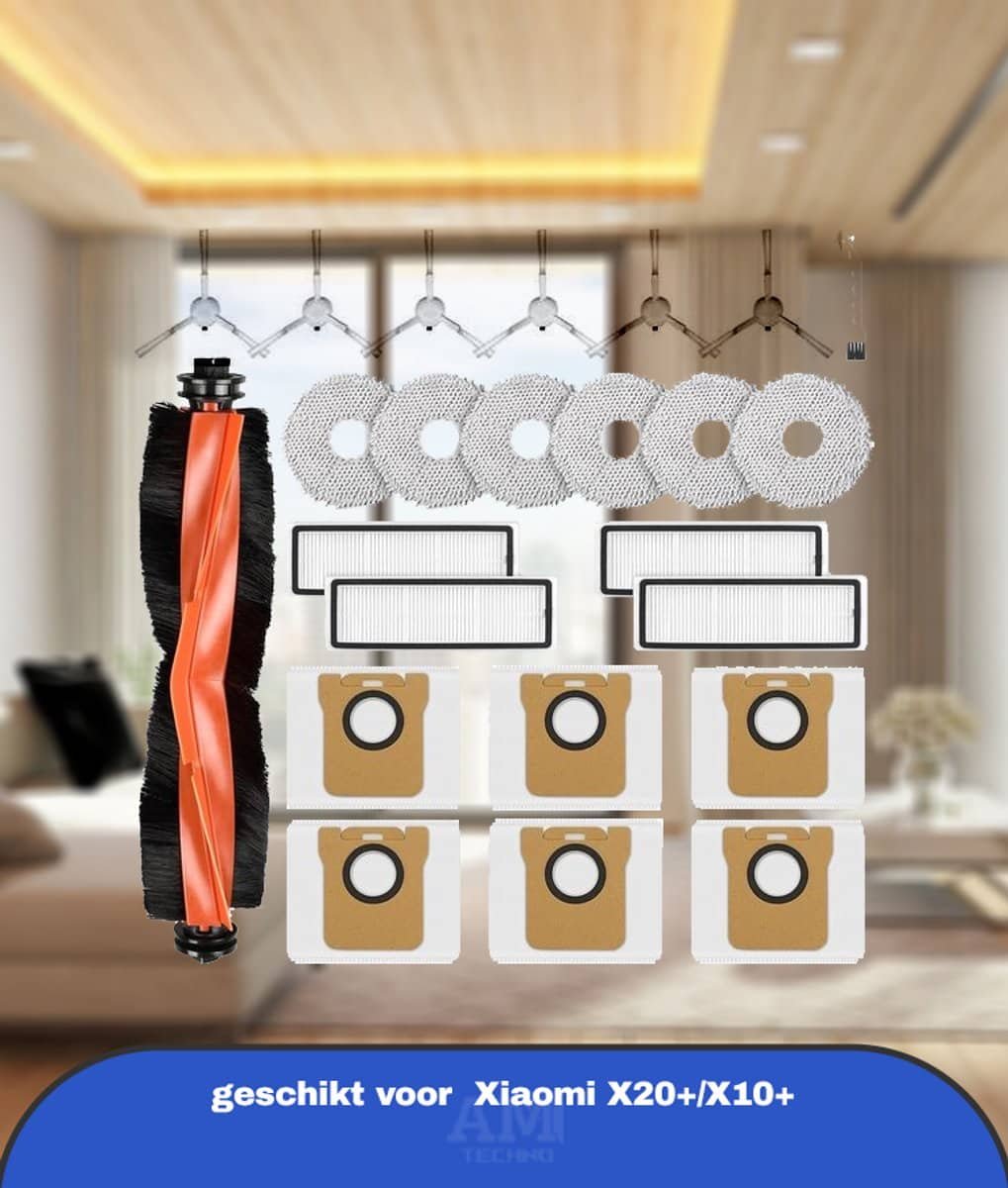 24-delige accessoireset voor Xiaomi X20+/X10+ robotstofzuiger, reserveonderdelen, 1 hoofdborstel, 6 dweilpads, 6 stofzakken, 6 zijborstels, 4 HEPA-filters, 1 reinigingsaccessoires