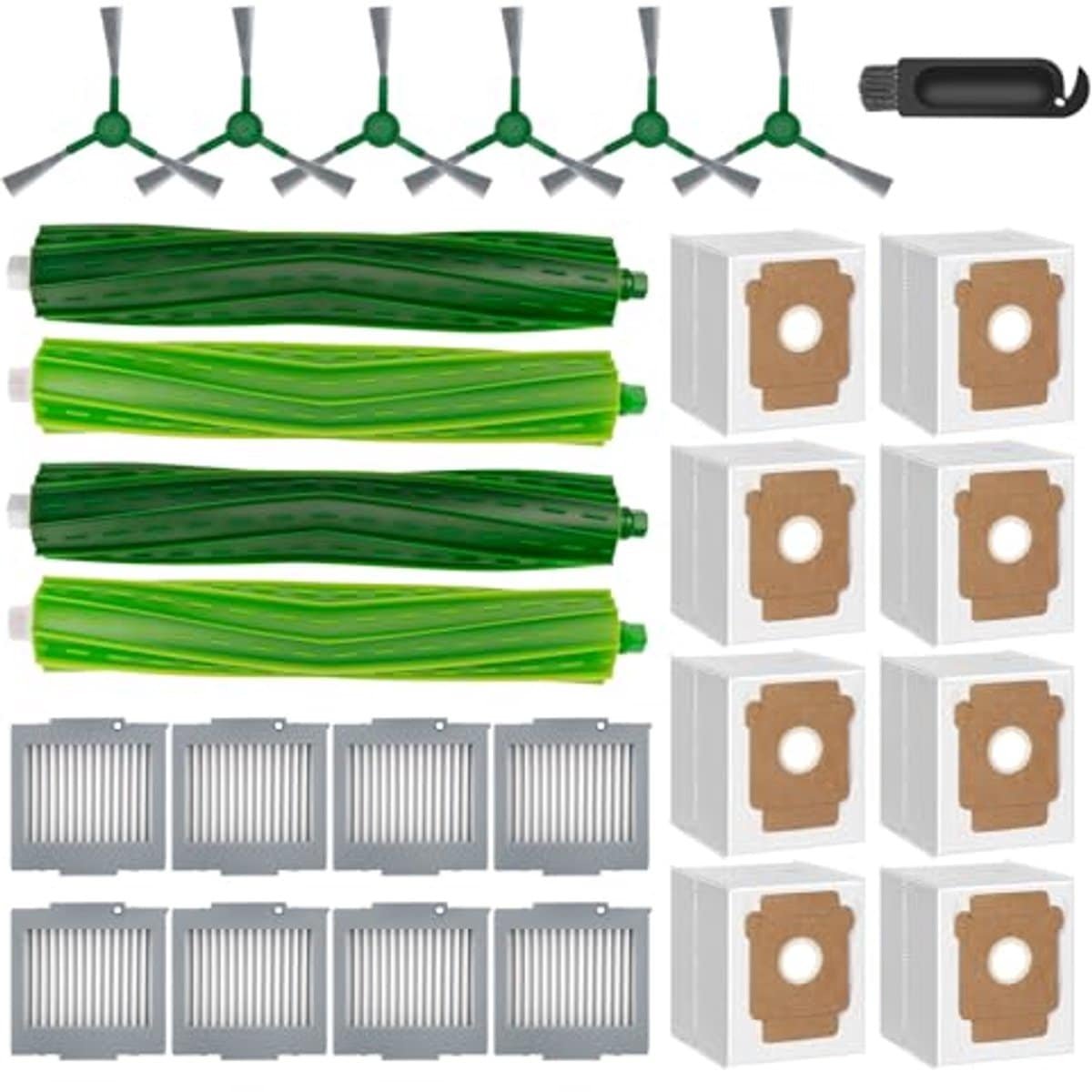 27-delige vervangingsonderdelen voor robotstofzuiger – rubber borstels, HEPA-filters, stofzakken en zijborstels