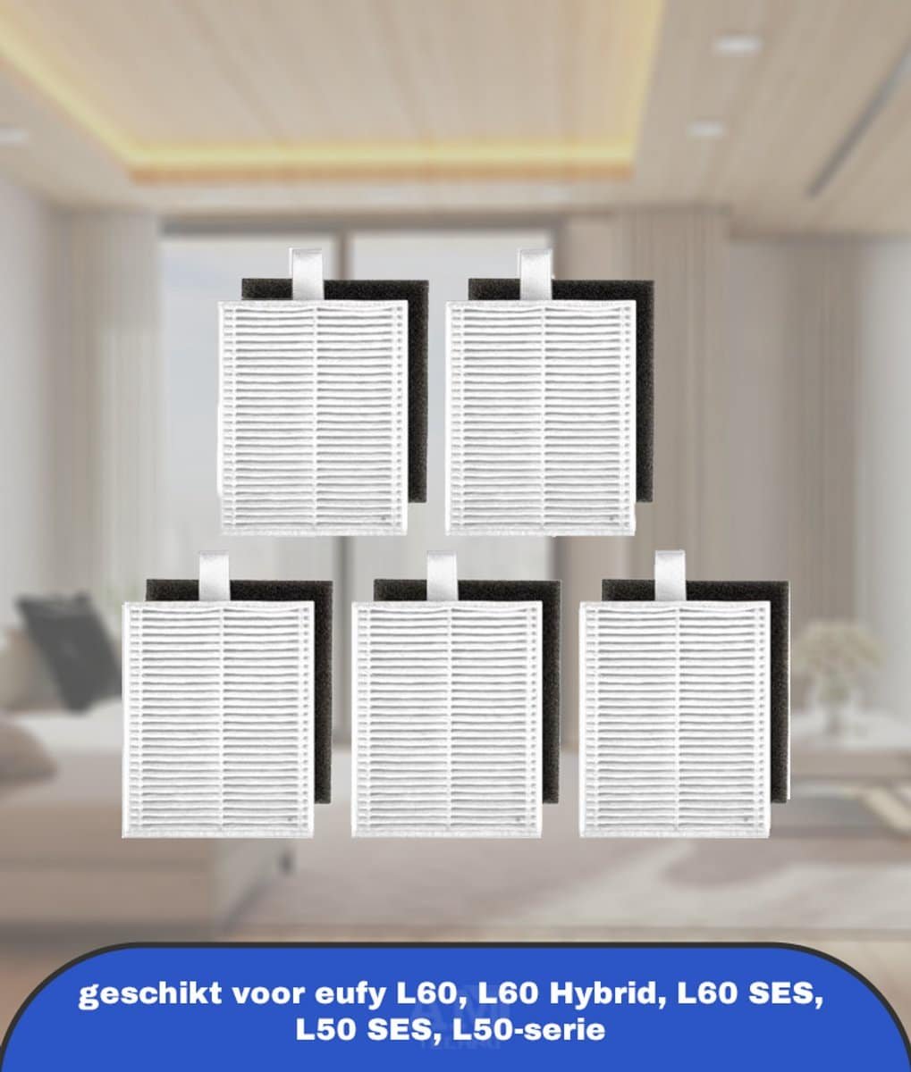 (5 Stuks) L60 L50 HEPA-filters geschikt voor eufy L60, L60 Hybrid, L60 SES, L50 SES, L50-serie Robotstofzuiger, HEPA-filterset, Vervangende Onderdelen, met Schuimfilter 5 Sets