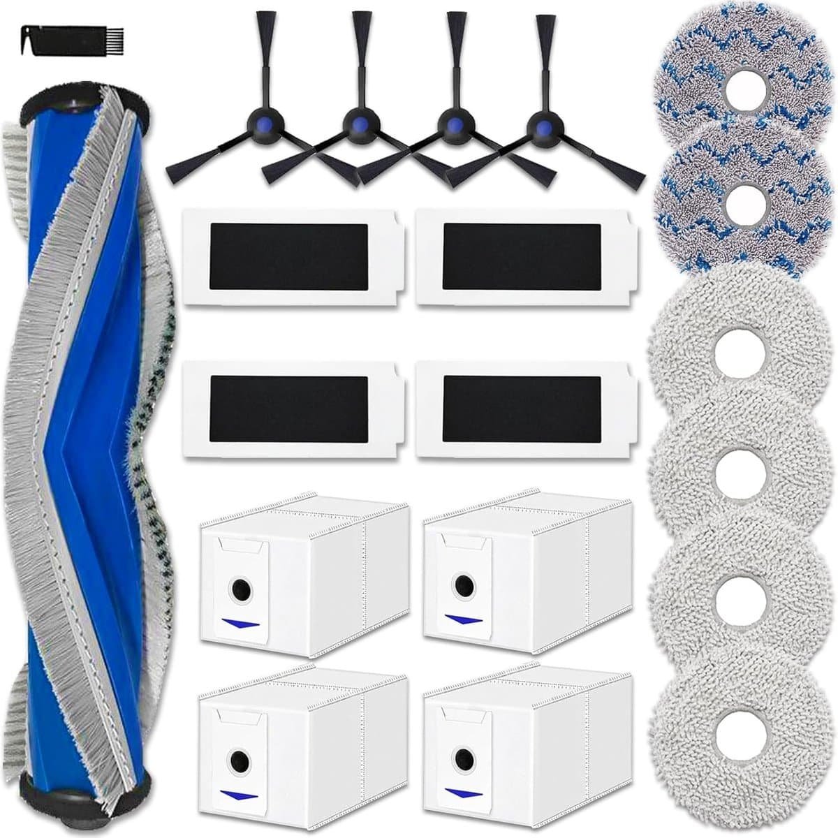 Accessoire set voor robotstofzuiger – 1 rolborstel, 4 HEPA-filters, 4 zijborstels, 6 mopdoeken, 4 stofzuigerzakken