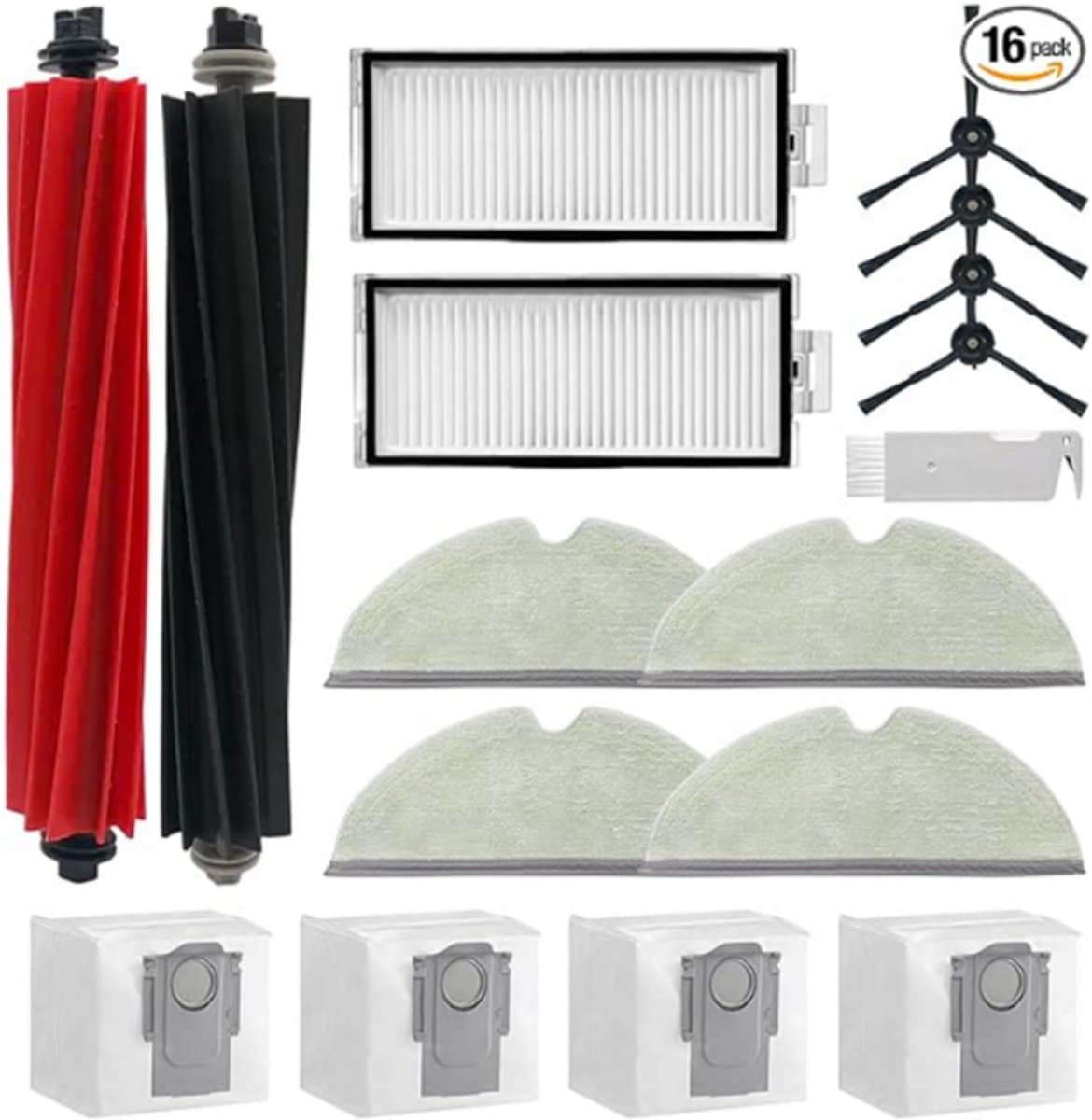 Accessoireset voor robotstofzuigers, reserveonderdelen met rolborstel, filters, stofzakken en dweilpads