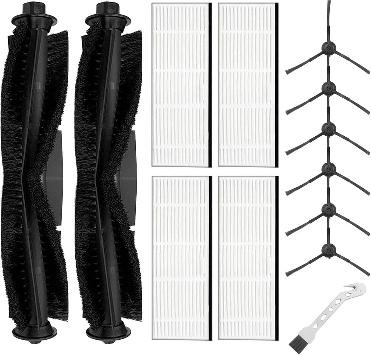 Ons uitgebreide pakket bevat alles wat je nodig hebt om je robotstofzuiger in topvorm te houden: 2 rolborstels, 6 zijborstels, 4 filters, 1 reinigingsborstel.