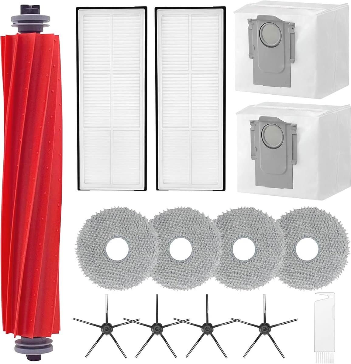 Accessoireset voor Robotstofzuigers – 1 Rolborstel, 2 Filters, 2 Stofzakken, 4 Dweilpads en 4 Zijborstels