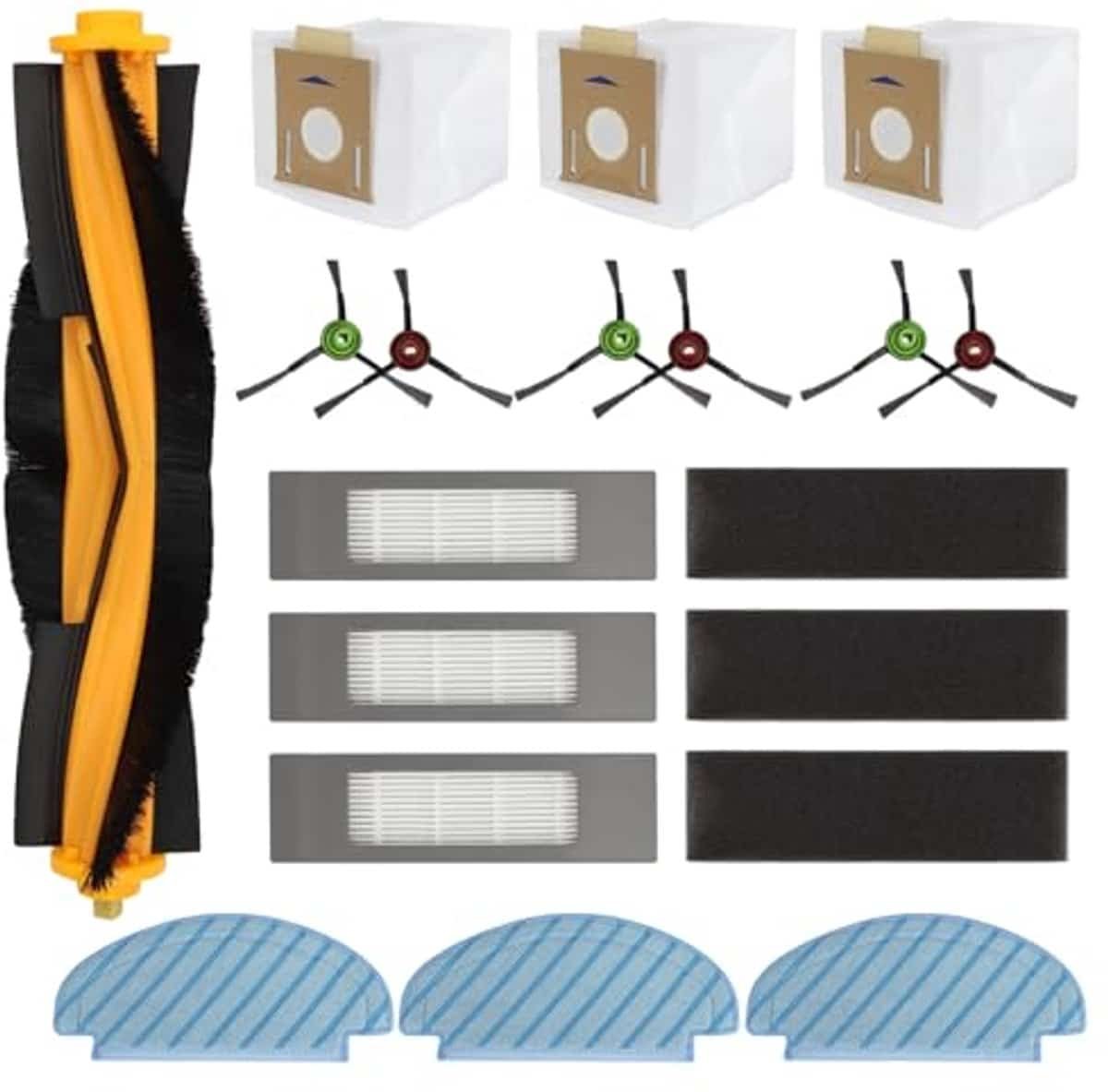 Compatibele modellen: Geschikt voor verschillende robotstofzuigers. Controleer het model van je stofzuiger voordat je bestelt. Deze set bevat 19 stuks, waaronder: 1 hoofdborstel, 6 zijborstels, 3 stofzakken, 3 wasbare dweilpads en 3 filters. Volg de aanbevelingen voor routinematig onderhoud om je robotstofzuiger in topconditie te houden. Vervang de stofzak indien nodig, reik elke 50 wasbeurten de dweilpads en reinig de filters wekelijks. Zorg ervoor dat je deze accessoires regelmatig controleert en vervangt voor optimale prestaties van je robotstofzuiger.