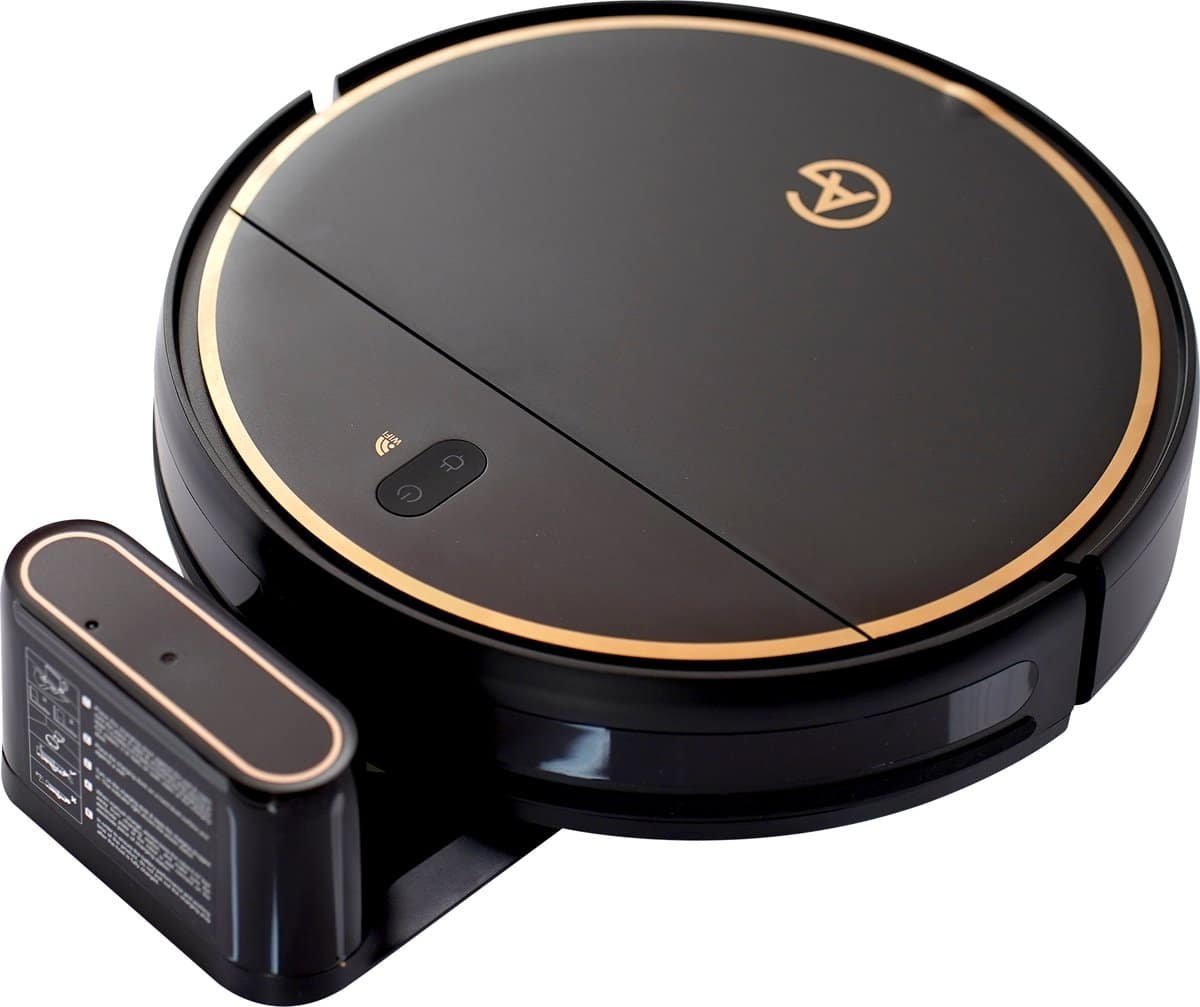 Luxe Ontwerp in Zwart en Goud De AG6000 is niet alleen praktisch, maar ook een stijlvolle toevoeging aan je huis. Het luxe zwarte en gouden design maakt deze robotstofzuiger met dweilfunctie tot een echte blikvanger, die perfect past in een modern interieur.