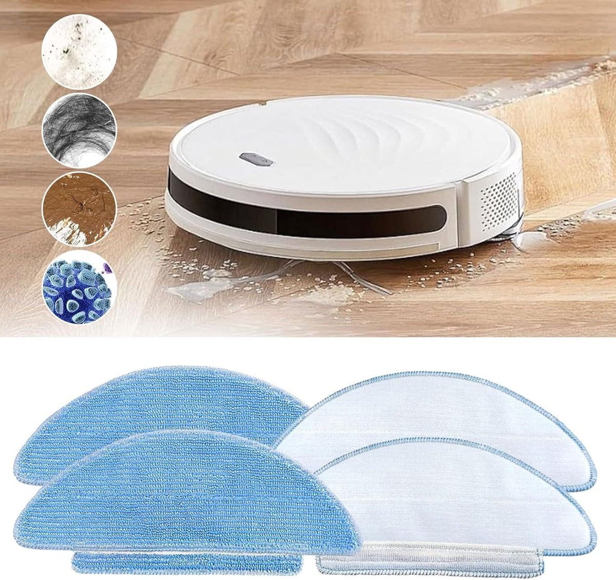 De dweilpads zijn multifunctioneel en ideaal voor de effectieve reiniging van harde vloeren en tapijten. Ze verwijderen moeiteloos vloeistoffen, stof en etensresten van de vloer. De installatie is eenvoudig en vereist geen gereedschap, waardoor je snel de robotstofzuigeraccessoires kunt vervangen.