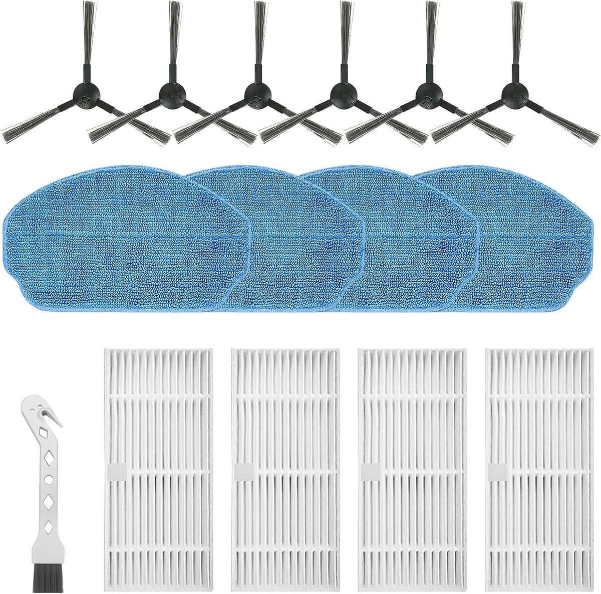 Allecto plus - Accessoires voor robotstofzuiger, 6 zijborstels, 4 filters, 4 schoonmaakdoeken, 1 reinigingsborstels (15 stuks)