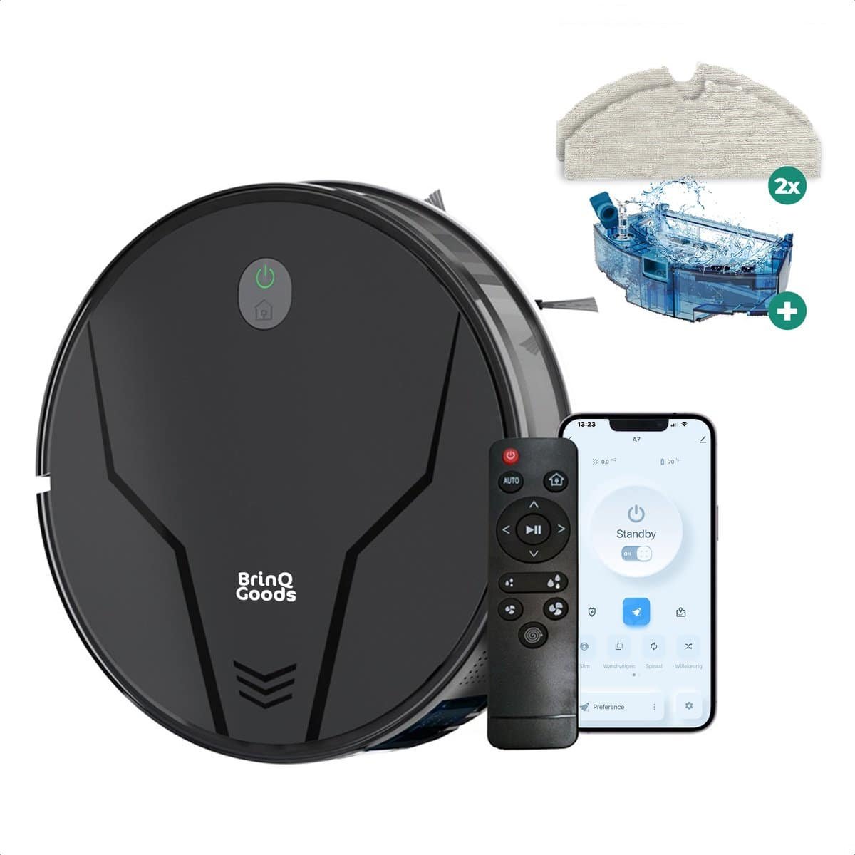 BrinQ Goods – Krachtige Robotstofzuiger Met Dweilfunctie – Met Laadstation – Dweilrobot – Met Afstandsbediening En App – Geschikt voor Huisdieren – Slimme Navigatie