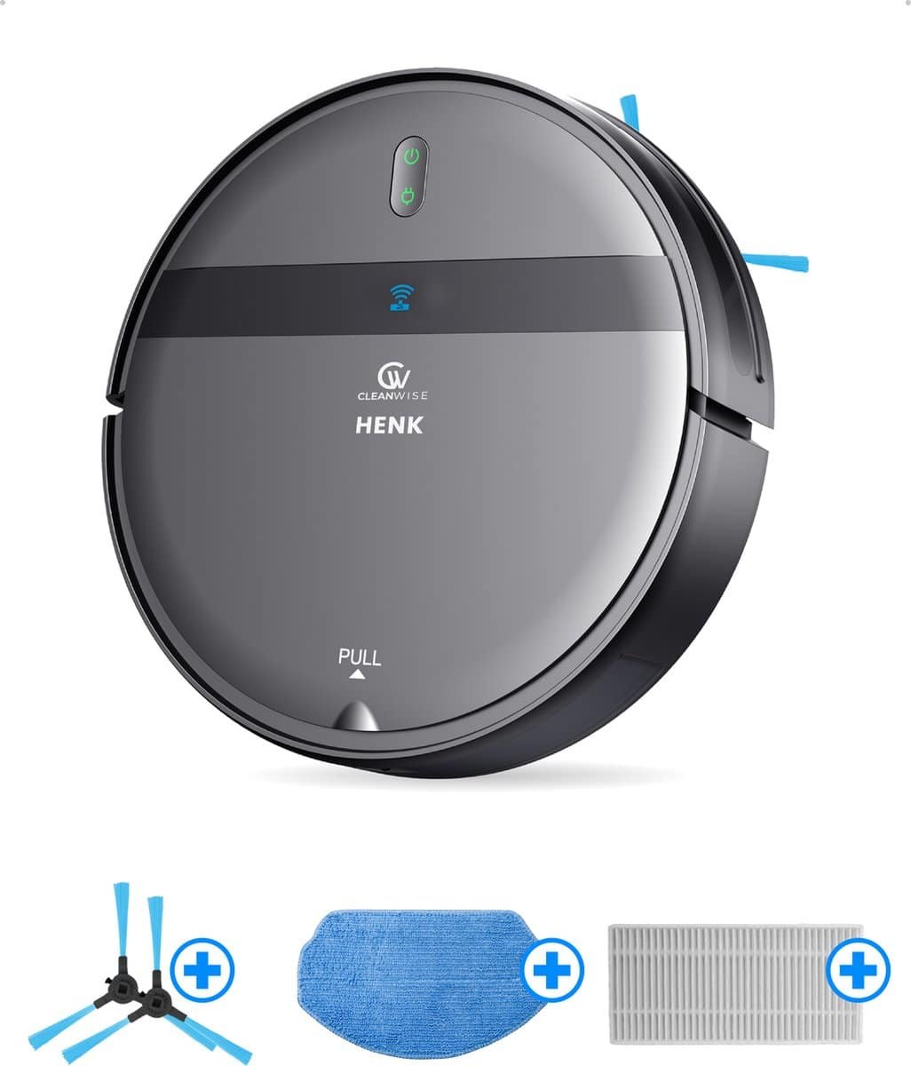 CleanWise Henk + Onderhoudspakket - Robotstofzuiger met dweilfunctie en laadstation - 4500 Pa zuigkracht, 5 schoonmaakmodi, app- en spraakbediening, ideaal voor huisdieren, harde vloeren & tapijt