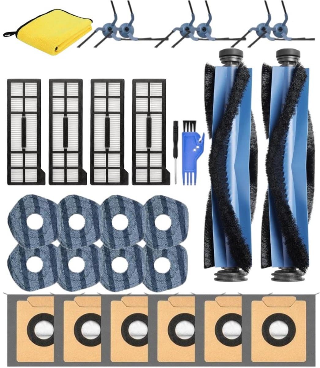 Dutchers® 29-Delige Vervangende Accessoires set voor Eufy X10 Pro Omni Robotstofzuiger,2 Hoofdborstel,6 Zijborstels,4 Hepa-filters,6 Stofzakken,8 Dweilpads