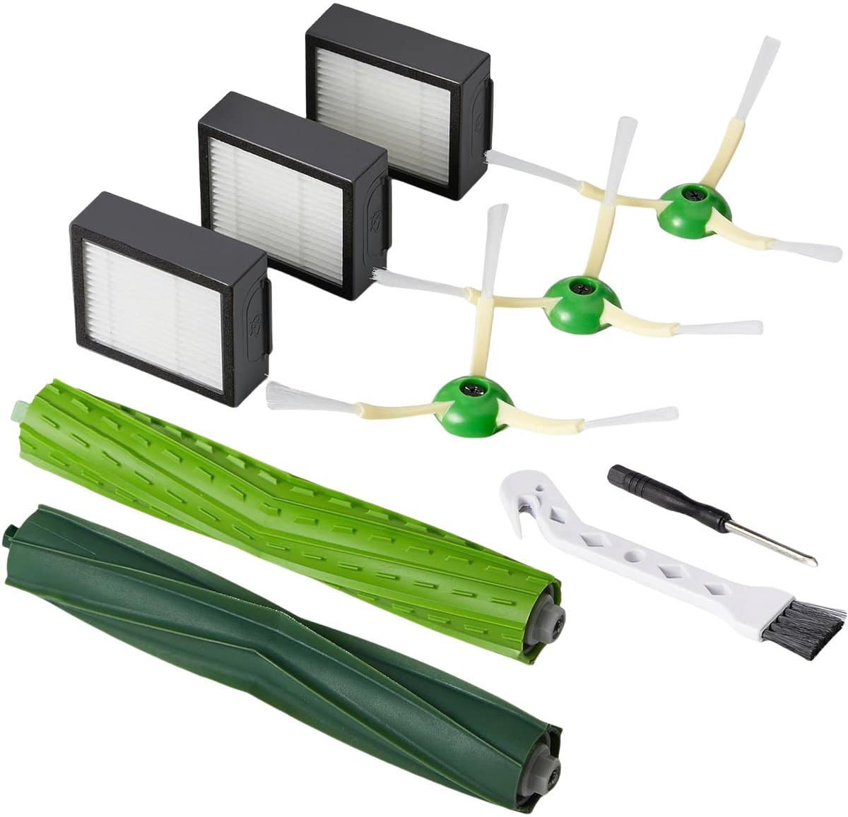 Geschikt voor accessoires voor iRobot Roomba i7 i7+ i3 E5 i3+ i4 i6 i6+ i8 i8+ robotstofzuigers - Compatibel met i7 i8 i6 i5 i4 i3 i1 E5 E6 J5 J6 J7 J8 J9 Plus - 3 HEPA Filters - 3 Zijborstels - 2 Rubberen Hoofdborstels - Vervangende Onderdelen Set