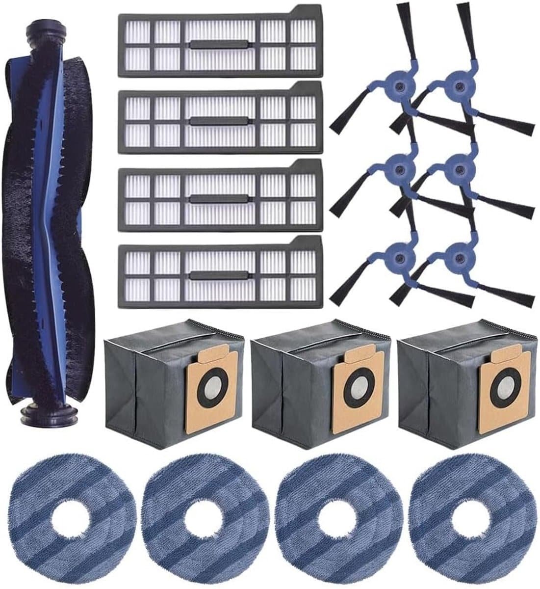 Geschikt voor Eufy X10 Pro Omni robotstofzuiger accessoires – 18-delige set vervangstukken: 1 rolborstel, 4 filters, 6 zijborstels, 4 dweilen, 3 stofzakken