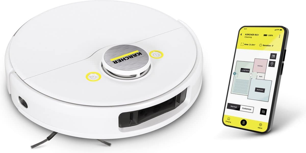 Kärcher RCV 5 Robotstofzuiger – met dweilfunctie – app-besturing – LiDAR-lasernavigatie – dubbele laser en AI mapping – ruimte en obstakeldetectie – 5000 Pa – 120 min looptijd – voor harde vloeren en tapijten