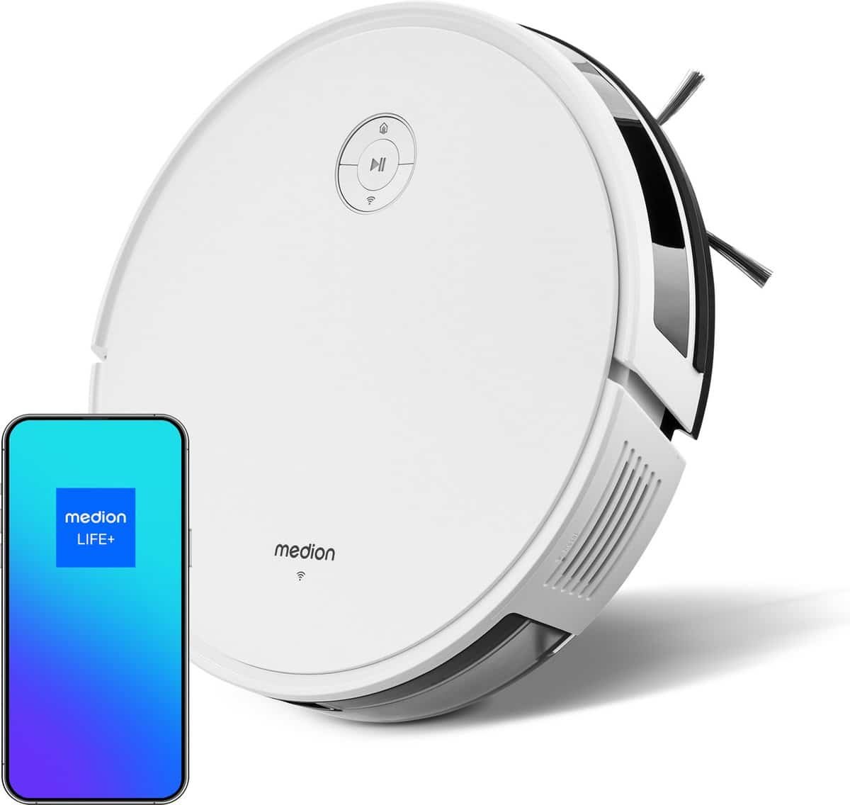 MEDION robotstofzuiger met intelligente navigatie S35 (app en spraakbesturing, 4000 Pa zuigkracht, gyronavigatie in systematische S-lijnen, tapijtdetectie, muursensoren)
