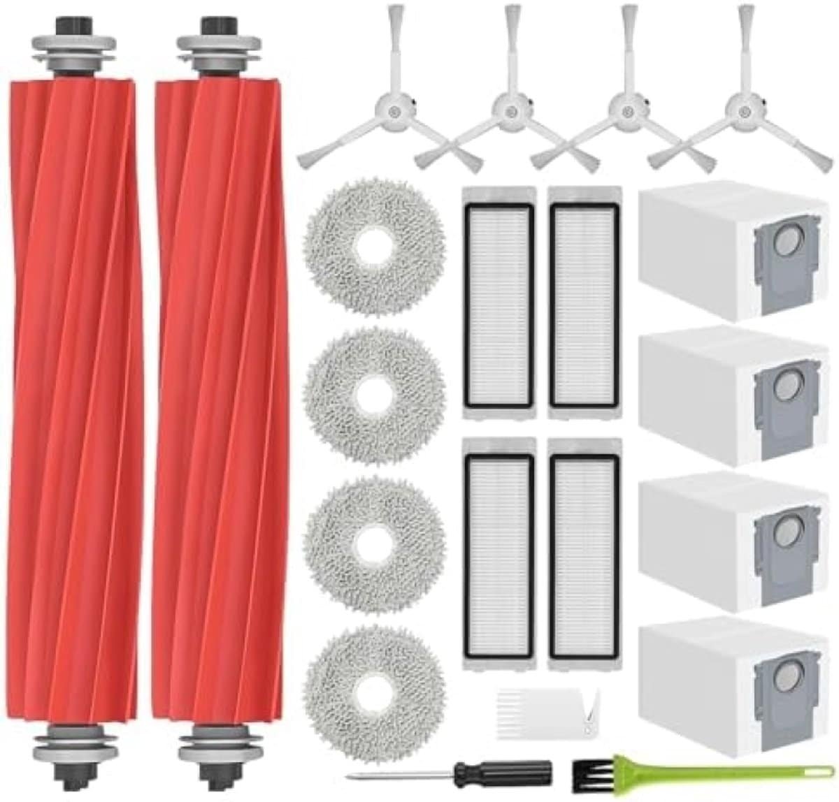 24-delig accessoireset voor robotstofzuiger - 2 hoofdborstels, 6 stofzakken, 4 dweilpads, 4 HEPA-filters, 6 zijborstels, reinigingsborstel en schroevendraaier - Universele compatibiliteit