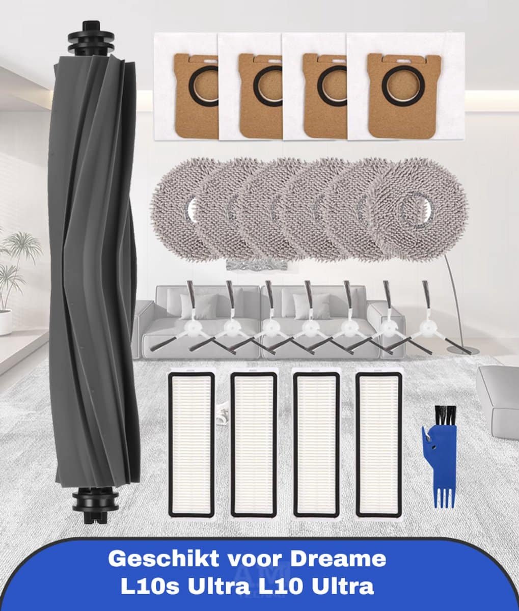 Reserveonderdelen accessoireset Geschikt voor Dreame L10s Ultra / L10 Ultra/robotstofzuiger, 1 hoofdborstel, 7 zijborstels, 4 filters, 6 dweilpads, 4 stofzakken, 1 x reinigingsborstel,