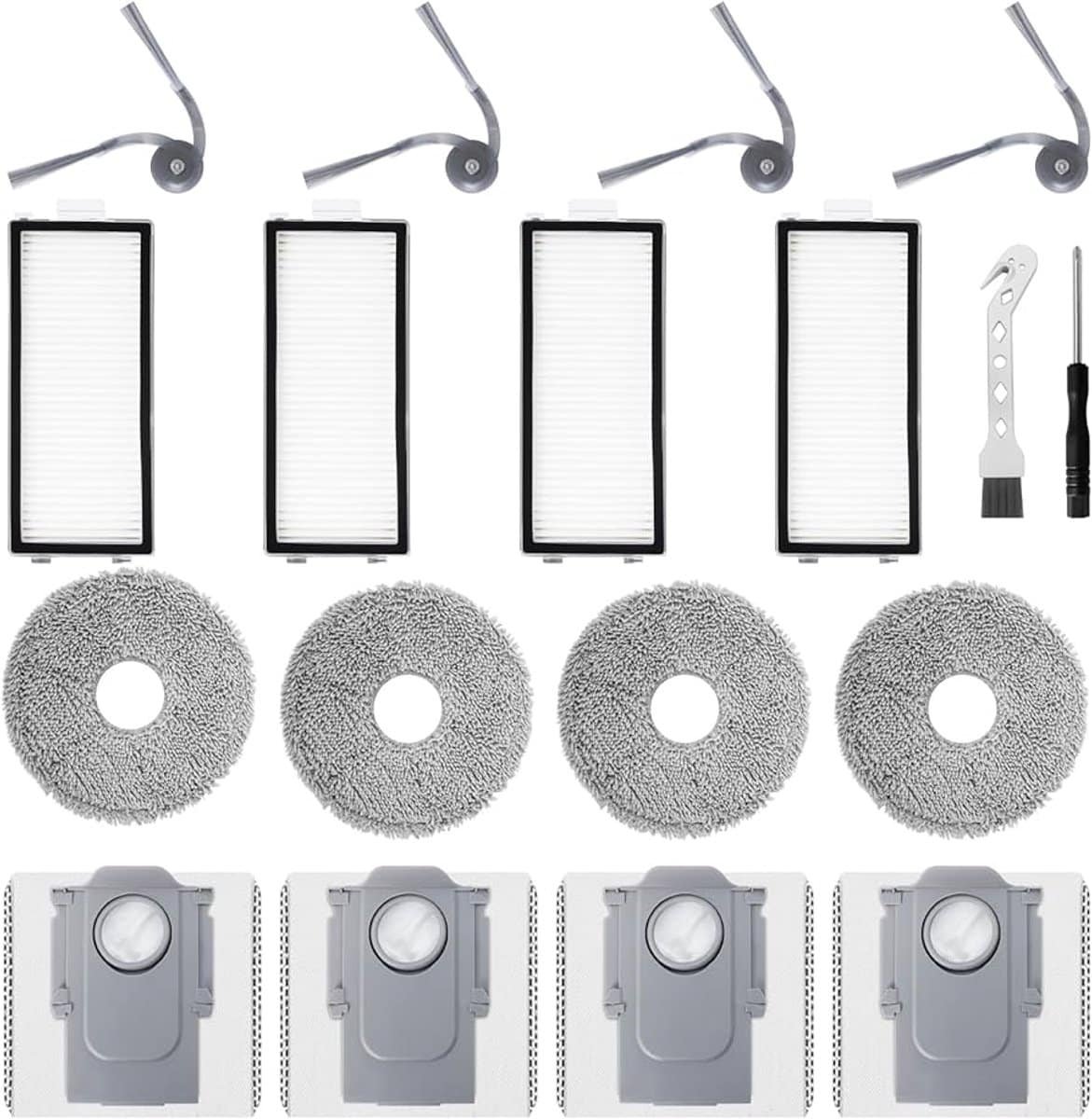 Verleng de levensduur van uw robotstofzuiger met deze uitgebreide reserveonderdelenset. Deze set bevat alles wat u nodig heeft voor een optimale werking en een schoon huis.