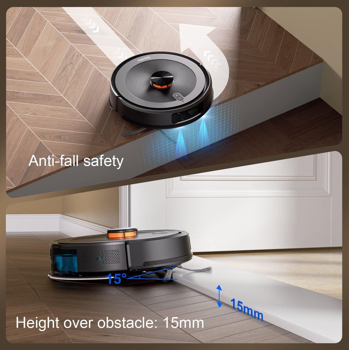 Slimme LiDAR-navigatie & kaartbeheer Dankzij LiDAR-lasernavigatie maakt de robot nauwkeurige kaarten van uw woning. Via de app kunt u meerdere kaarten opslaan, virtuele muren instellen en specifieke zones selecteren.