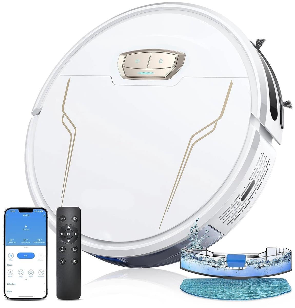Robotstofzuiger met Dweilfunctie – Robotstofzuiger – Dweilrobot – 5000Pa – Zuigkracht – Slimme Navigatie – App – Spraakbesturing – 150 Min Accuduur – HEPA Filter – 32x32x7.6 cm