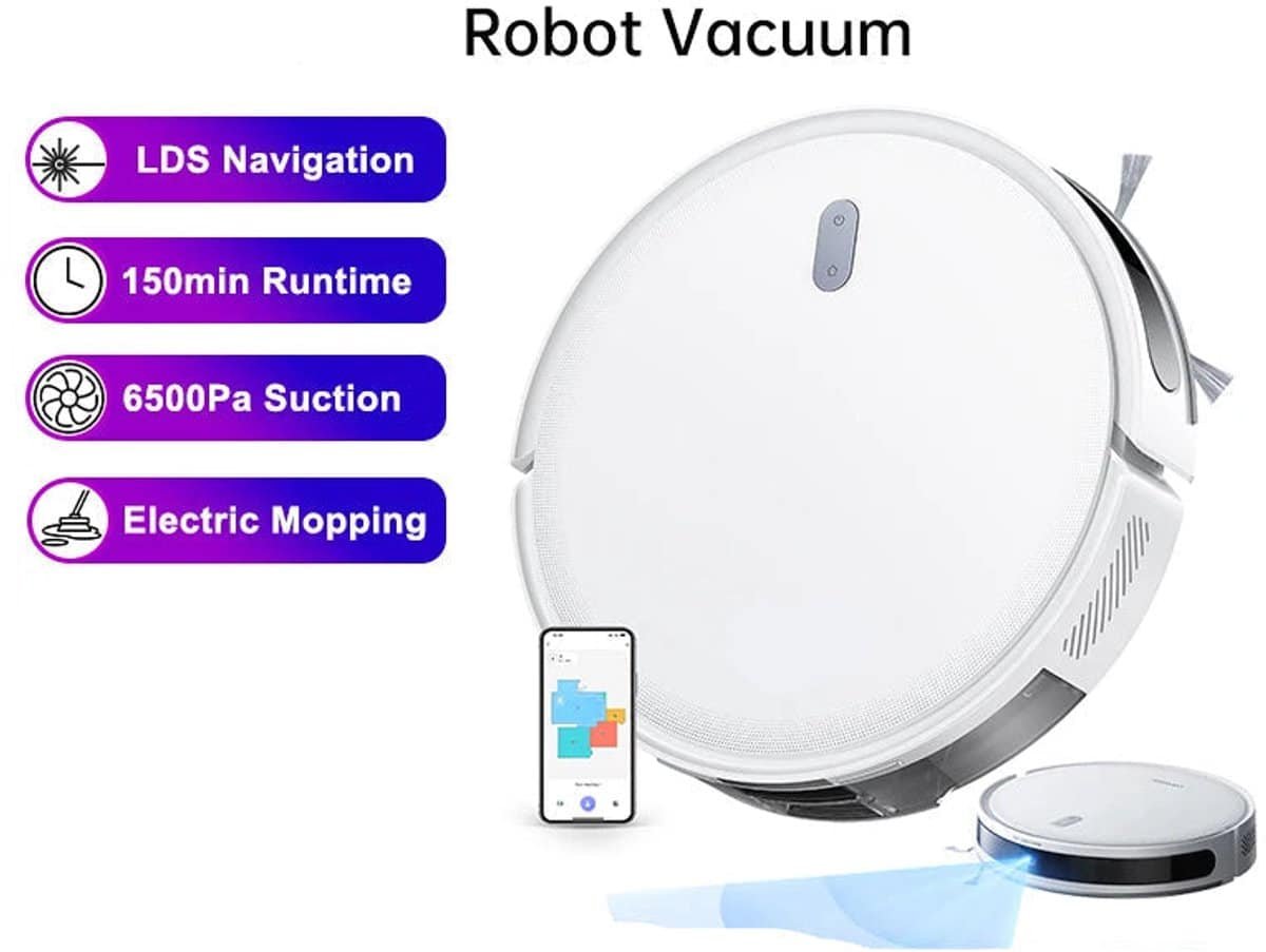 Robotstofzuiger met Dweilfunctie – Robotstofzuiger – Dweilrobot – 6500Pa – Zuigkracht – LiDAR Navigatie – App – Spraakbesturing – 150 Min Accuduur – HEPA Filter – 33x33x8.3cm