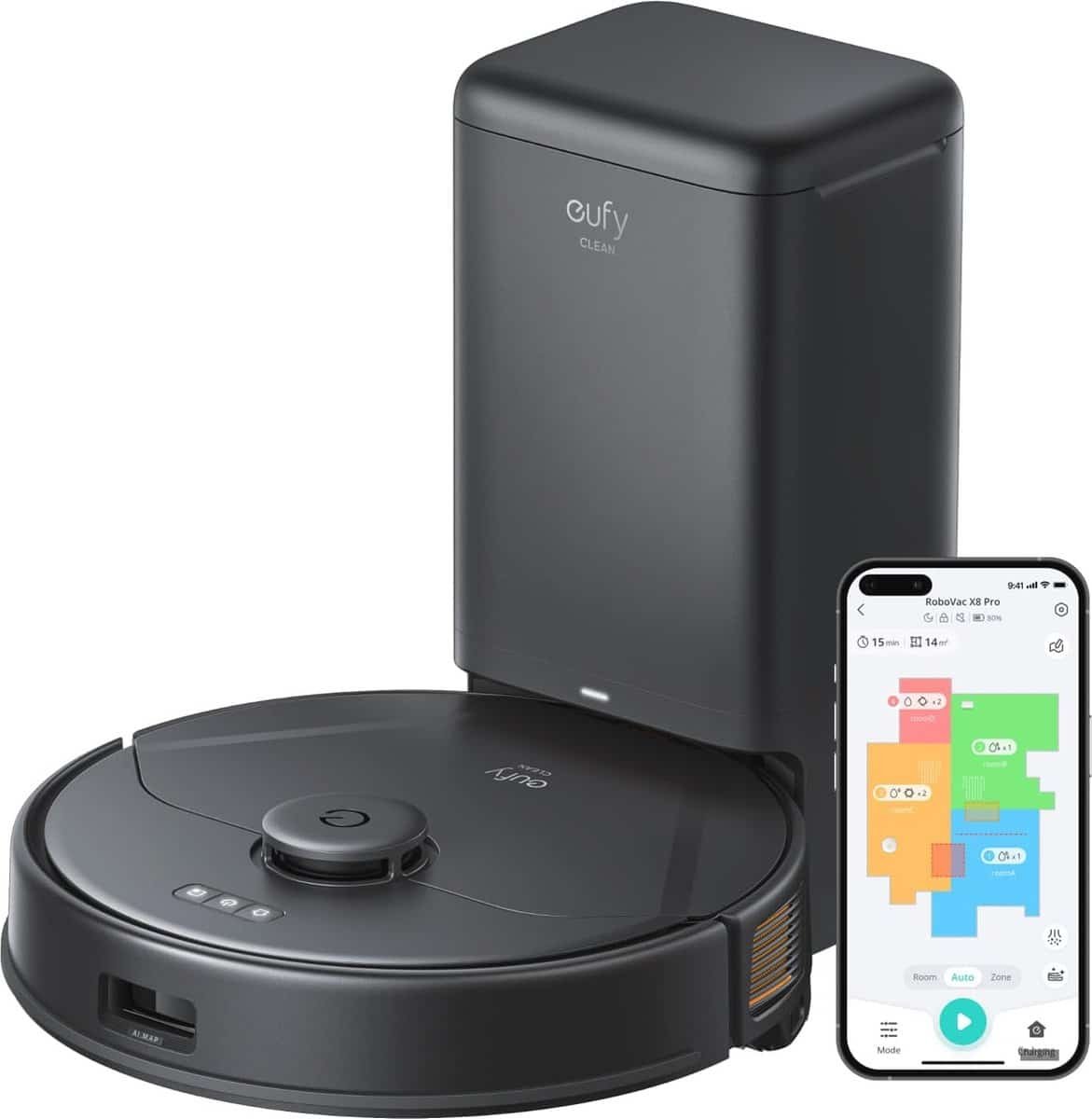 Robotstofzuiger met zelf-leegstation en hoge zuigkracht voor het verwijderen van dierenharen
