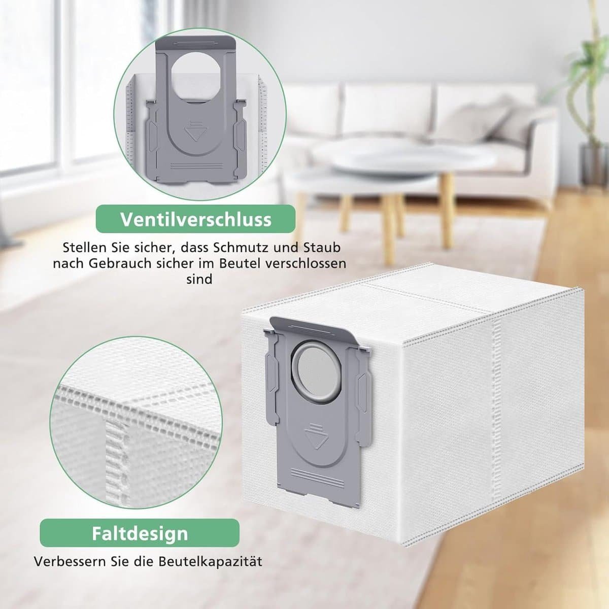 De vervangende stofzuigerzakken zijn voorzien van premium-filtratie met 4 lagen, inclusief meltblown en vliesvezels. Deze geavanceerde filtering kan tot 99,99% van stofdeeltjes zoals vuil, haren en pollen effectief opvangen, wat resulteert in een schonere leefomgeving.