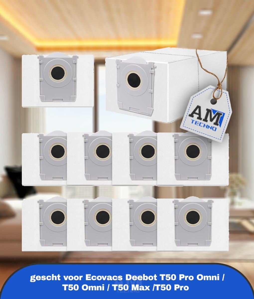 Stofzuigerzak gescht voor Ecovacs Deebot X8/X9 PRO Omni/T50 Pro Omni/T50 Max Pro/T50 Omni/T80/T30C robotstofzuiger,actieve koolstofzak accessoires,10 stuks 3L capaciteit stofzuigerzakken,reserveonderdelen