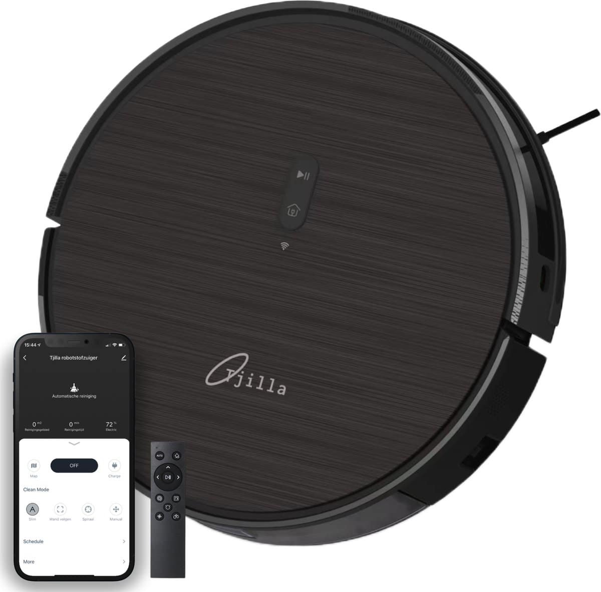 Tjilla C100 Robotstofzuiger met dweilfunctie – Nederlands product – Anti-klit borstel – Met laadstation – V-Slam navigatie – Proefperiode 30 dagen – Huisdieren – Dweilrobot – Bediening met App – Met afstandsbediening – 10.000pa