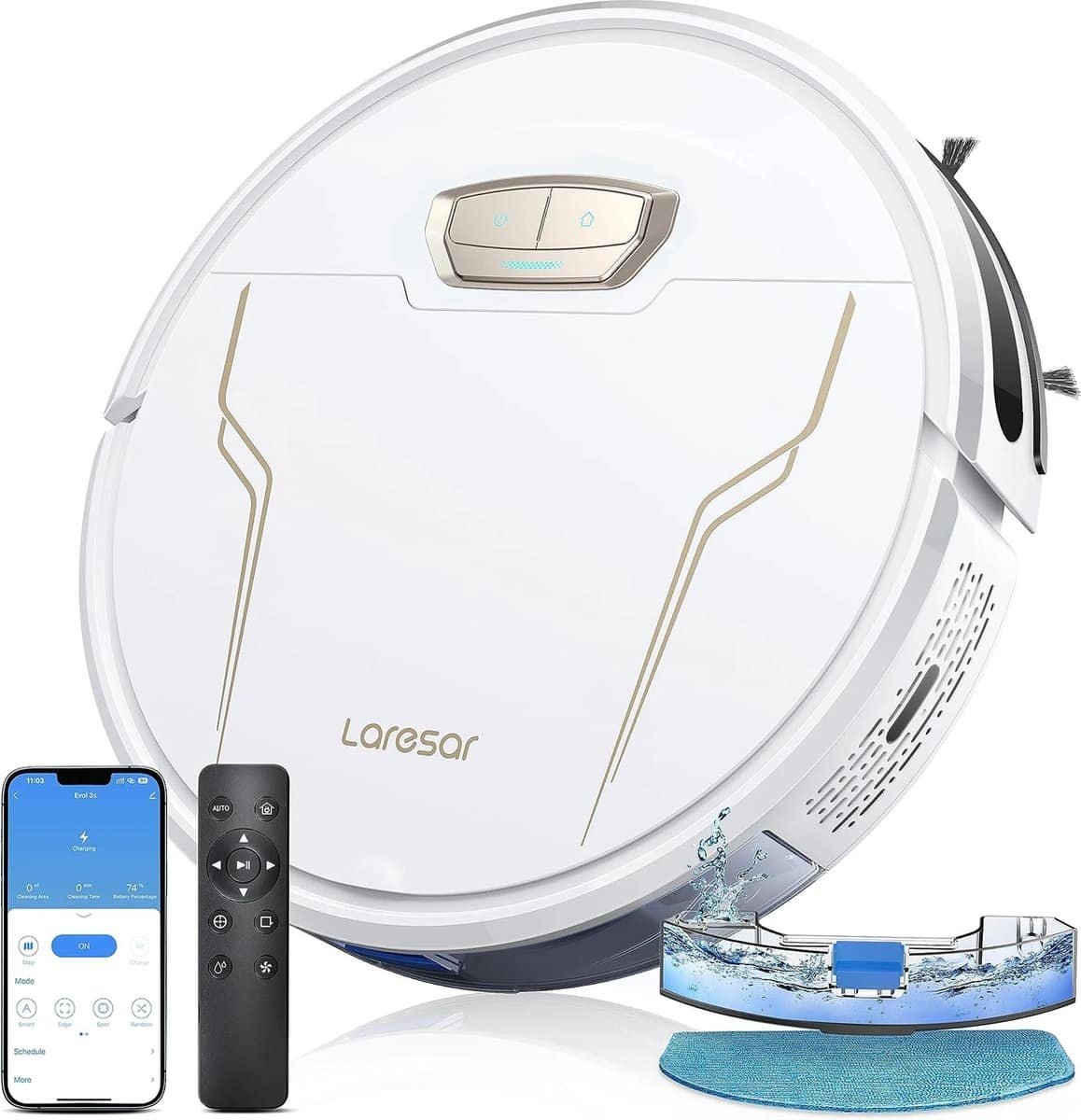 Maak kennis met de Laresar 3S Robotstofzuiger en Dweil – een krachtige en veelzijdige schoonmaakoplossing die jouw huis efficiënt en grondig reinigt. Met de geavanceerde functies van deze robot kun je je schoonmaakroutine naar een hoger niveau tillen. Of je nu tapijt, harde vloeren of tegels hebt, de Laresar 3S levert uitstekende prestaties op elk oppervlak.