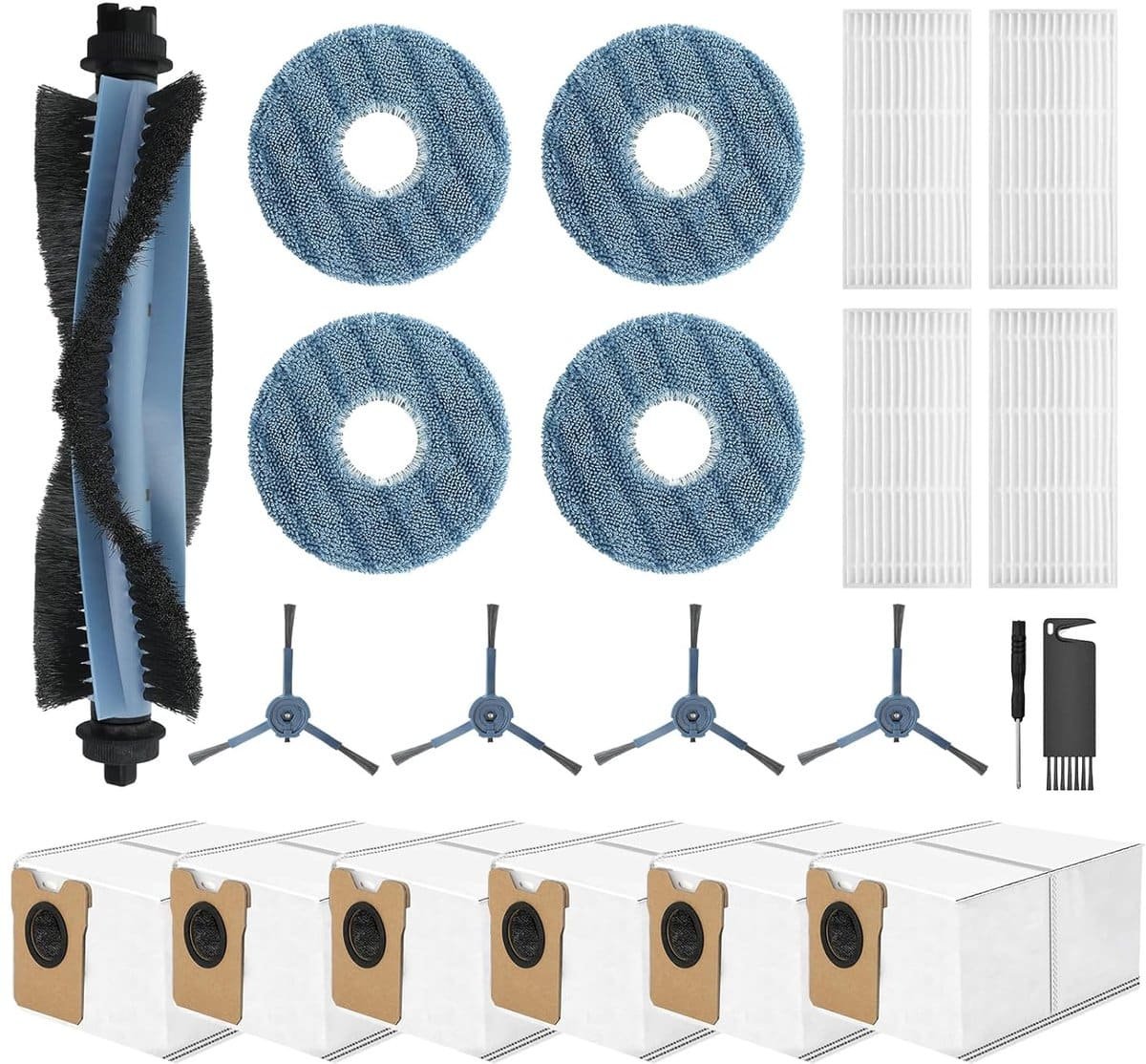 Vervangende accessoires set voor robotstofzuiger – 1 hoofdborstel, 4 dweildoek pads, 4 zijborstels, 4 HEPA-filters, 6 stofzakken
