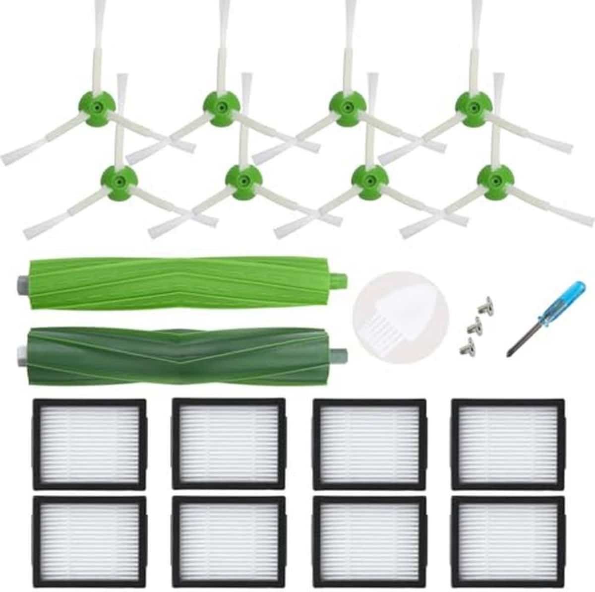 Deze vervangende onderdelen kit is compatibel met diverse robotstofzuigers van de E en I Serie. Geschikt voor modellen zoals E5, E6, i7, i7+, i3, i3+, i4, i4+, i6, i6+, i8 en i8+. Inhoud van de verpakking: 8 filters, 8 randdweilborstels, 1 set multi-vloerborstels, 1 rubberen borstel, 1 filterreinigingsborstel en 1 schroevendraaier met 3 schroeven om alles gemakkelijk te installeren. Niet alleen verbeter je de reinigingsefficiëntie, maar je houdt ook je robotstofzuiger in topconditie met deze complete set.